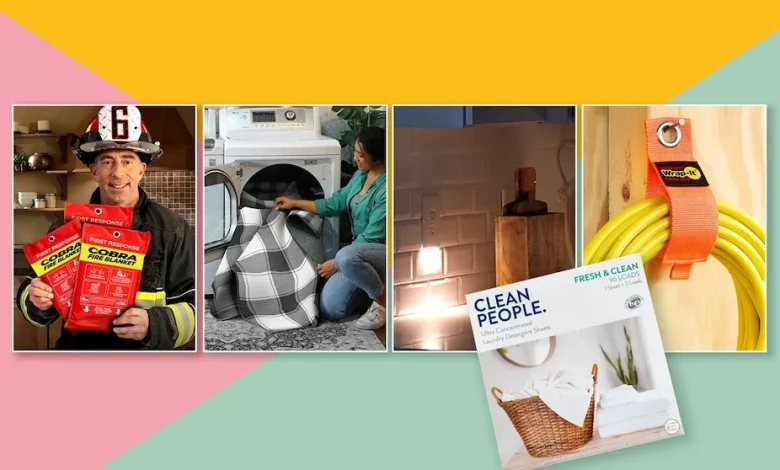 On the home side, Bed Scrunchie is described as a sheet-tightening system designed to keep sheets smooth, with each pack including one Bed Scrunchie and eight fabric clips.