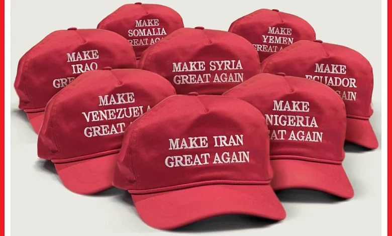 The cover echoes language linked to “Make America Great Again, ” but replaces the slogan with country names to point directly at U. S. military activity during Trump’s presidency. The result is a compact visual that invites renewed debate about the United States’ role in international conflicts.