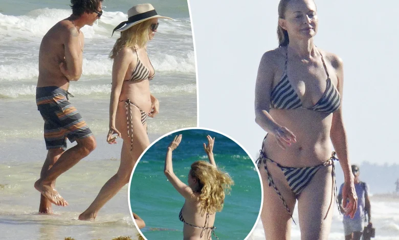 On a bright afternoon in Tulum, Mexico, heather graham moved between ocean and shoreline in swimwear that drew cameras and comments alike—first in a striped bikini in the surf, later in a separate set of Instagram photos from a yoga retreat that showed her cycling through beach days, poses, and time with friends.