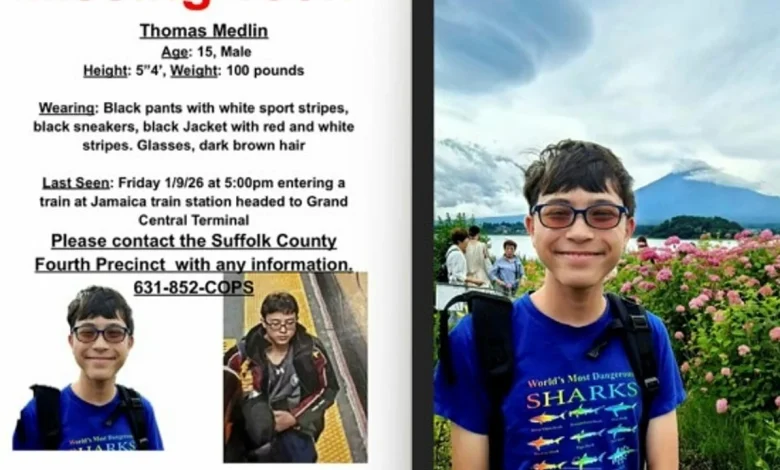 Police said Thomas Medlin had been missing since Jan. 9, after leaving the Stony Brook School that afternoon. Authorities said he was seen at Grand Central Station later that day.