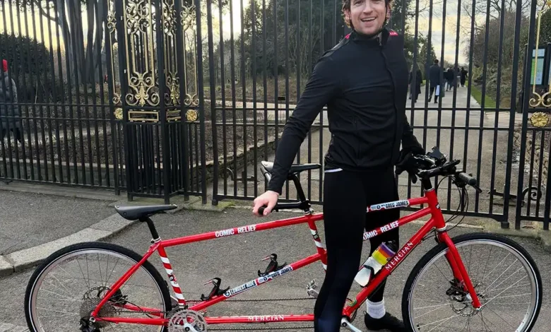 greg james comic relief has seen Radio 1 presenter Greg James tackle a 1, 000km tandem ride across the UK, arriving in York and North Yorkshire on Tuesday, 17 March (ET). He set off on Friday, March 13 (ET) and is riding at least eight hours a day largely on his own while aiming to raise money for Comic Relief. The challenge includes a Somerset farm shop stop and a planned finish in Edinburgh on Friday, March 20 (ET).