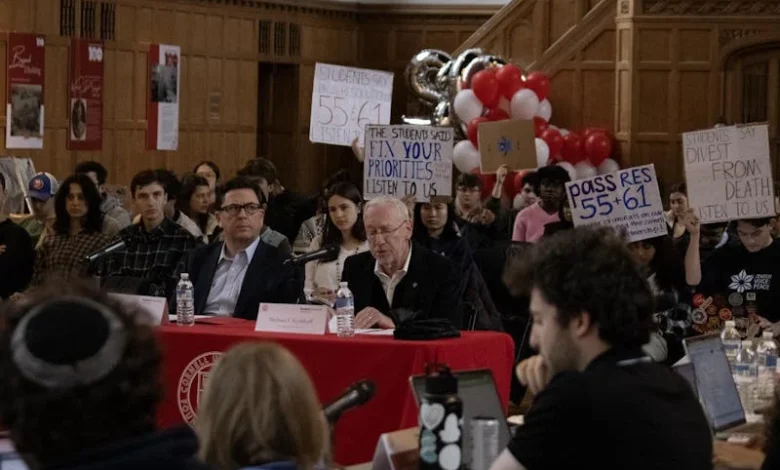 cornell university entered a new phase of campus governance tension Thursday evening when President Michael Kotlikoff and Vice President for Student and Campus Life Ryan Lombardi appeared before a packed Student Assembly meeting that later passed two controversial resolutions by wide margins.