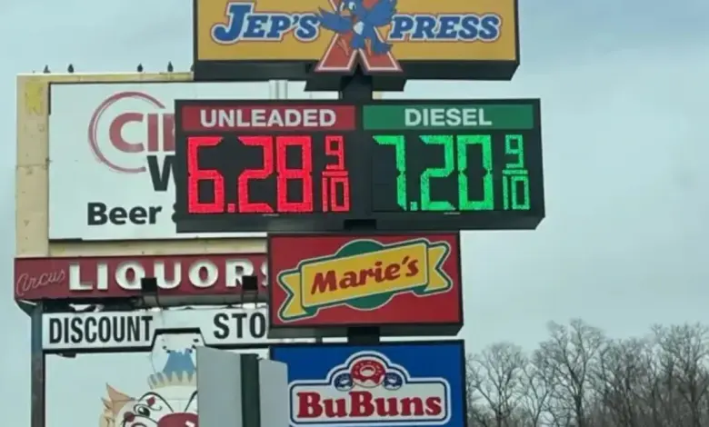 The set’s visibility is part of its power and its complication. The posted prices are public-facing, but the property is not. Residents encountering the sign may reasonably mistake it for an active station at first glance, and the surprise can prompt confusion about whether those numbers reflect reality or fiction.