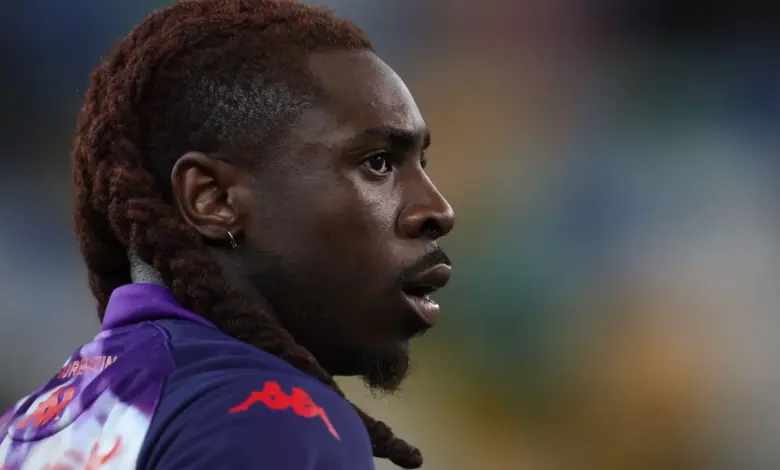Image caption (alt text): moise kean warms up as his brother Giovanni Kean watches from the stands, reflecting on injuries and a ‘fighter’ partnership.