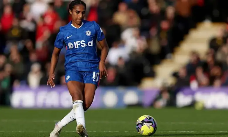 The goal instantly changed the match texture. Within minutes, Chelsea were creating and shooting: Erin Cuthbert Walsh had a shot blocked, Lauren James fired wide, and Chelsea again went wide through a move where a pass found Guro Reiten Thompson running in behind before a cross; in the middle, Patten did enough to disrupt Sam Kerr, and James followed with another effort that went wide.
