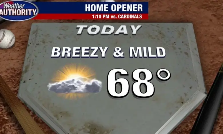 While Opening Day itself is projected to be the brighter part of the stretch, the pattern turns quickly afterward. Rain is expected to move back in late tonight and linger into Saturday, with a pretty wet day characterized by rain more on than off.
