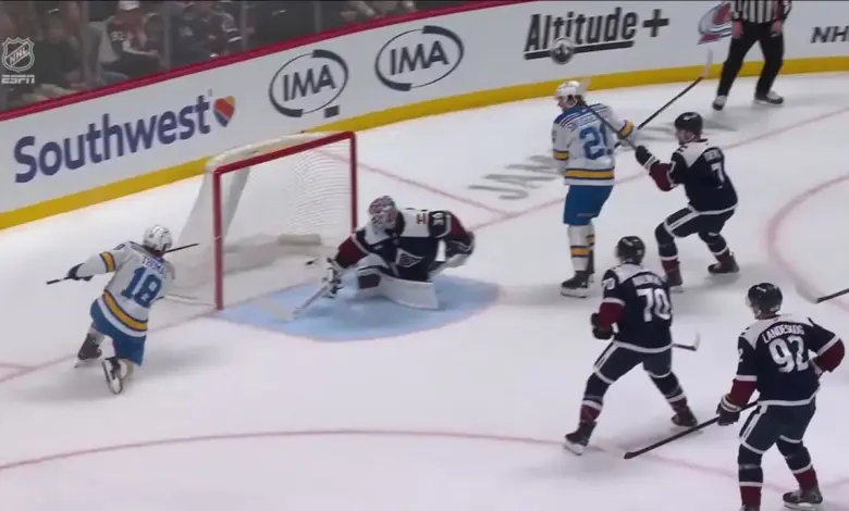 That is the central question surrounding Robert Thomas: what does it mean when one skater keeps answering every swing in the game? In this case, the answer is visible in the sequence itself. St. Louis did not merely survive Colorado’s response. It kept getting a decisive touch from Thomas, including the goal that made it 2-3.