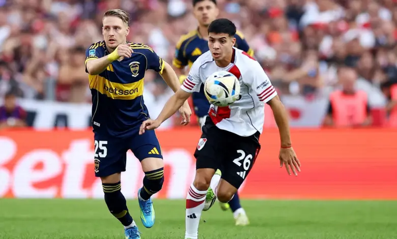 The first major footballing interruption came from River Plate’s bench. Sebastián Driussi had to leave because of a muscle injury, and Maxi Salas came on in his place. That change is important not only because it altered the home side’s shape, but because it underlined how quickly a Superclásico can shift from symbolic to tactical. In an environment this charged, one substitution can change pressing patterns, passing lanes and the balance of the match.