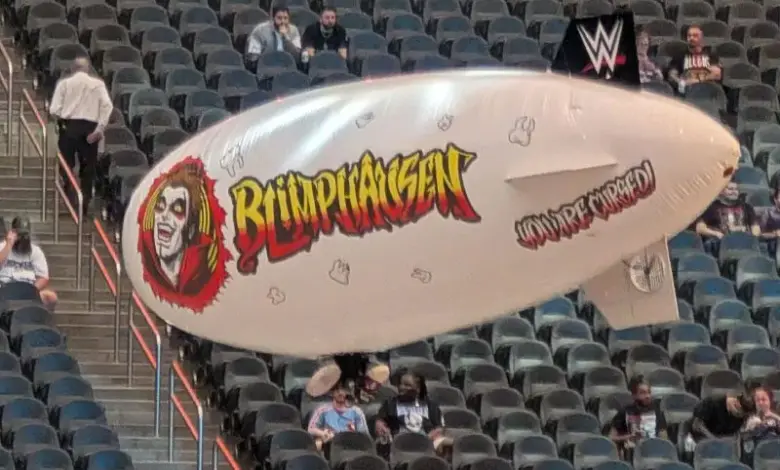 Danhausen’s role in the conversation grew out of a different kind of visual stunt. He had posed in front of the Goodyear Blimp earlier in the week, and by the time WrestleMania 42 arrived, he had his own custom Blimphausen floating inside Allegiant Stadium. Fans inside the venue noticed the addition quickly, turning it into one of the most unusual sights connected to the weekend.