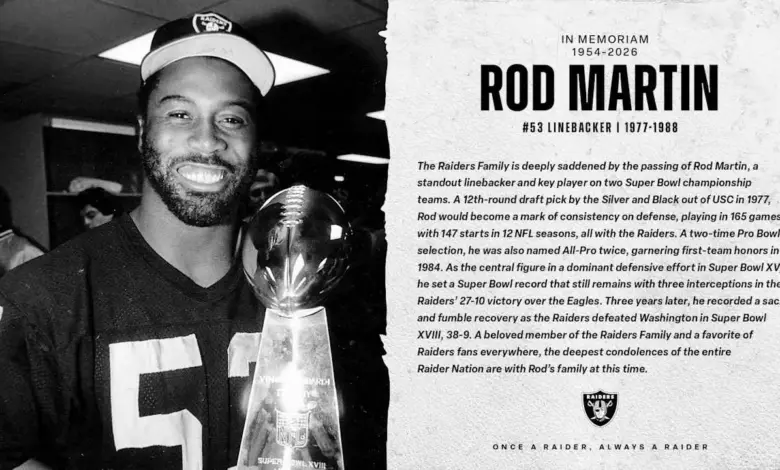 The loss of Rod Martin has reopened one of the Raiders’ most enduring football memories: a linebacker whose career was built on consistency, postseason impact and a record that still stands. In the wake of his death at 72, the story is not only that a former star is gone, but that rod martin remains tied to two championship teams and to a defensive identity the Raiders still celebrate. What makes his place in team history so striking is how clearly the numbers capture it.