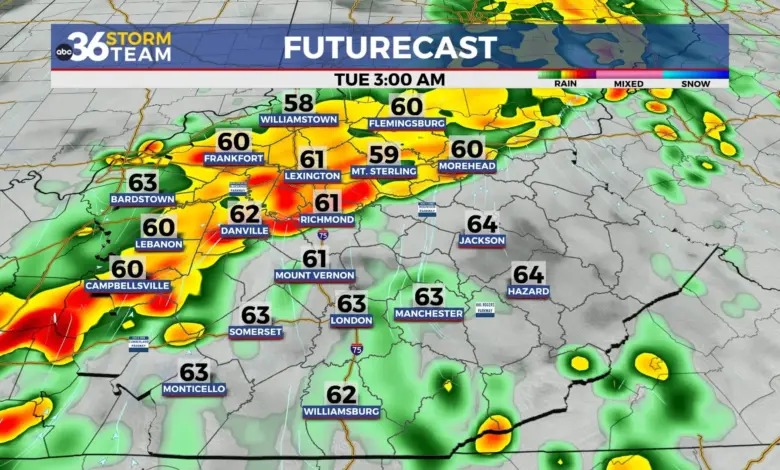 The latest weather derby is unfolding on a night when warm, humid air is doing exactly what forecasters fear: feeding storms that can turn quickly. In central Kentucky and nearby areas, Monday night brings scattered rain and storms, some of them strong or severe, before another round develops later. The threat is not just about rain totals. It is about timing, overnight visibility, and the possibility that damaging winds, heavy rain, and even tornadoes could arrive while many people are asleep.